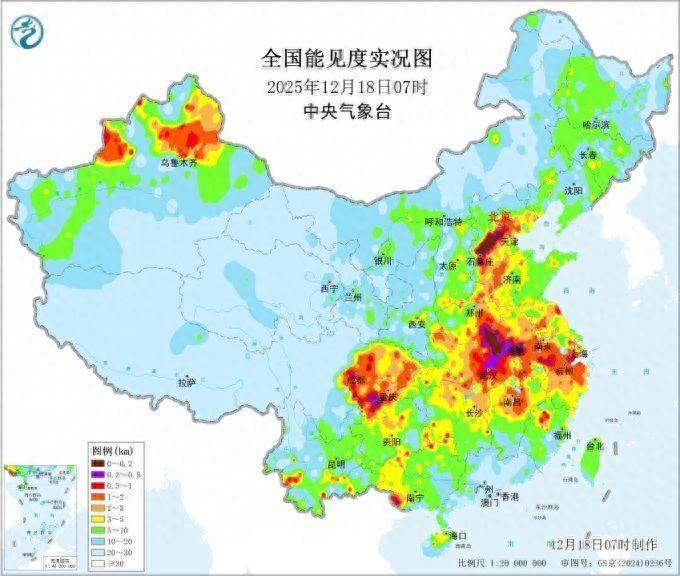 中央气象台18日早晨继续发布大雾黄色预警:预计18日上午时段,河北、河南、湖北、安徽、四川盆地等地大雾天气持续,其中河北中部、河南南部、安徽中部、四川盆地东南部等局地有能见度低于200米的强浓雾。另外,今明两天,华北中南部、黄淮、江淮西部、江汉、陕西关中、四川盆地等地部分地区大气扩散条件较差,有轻至中度霾,部分地区有重度霾。