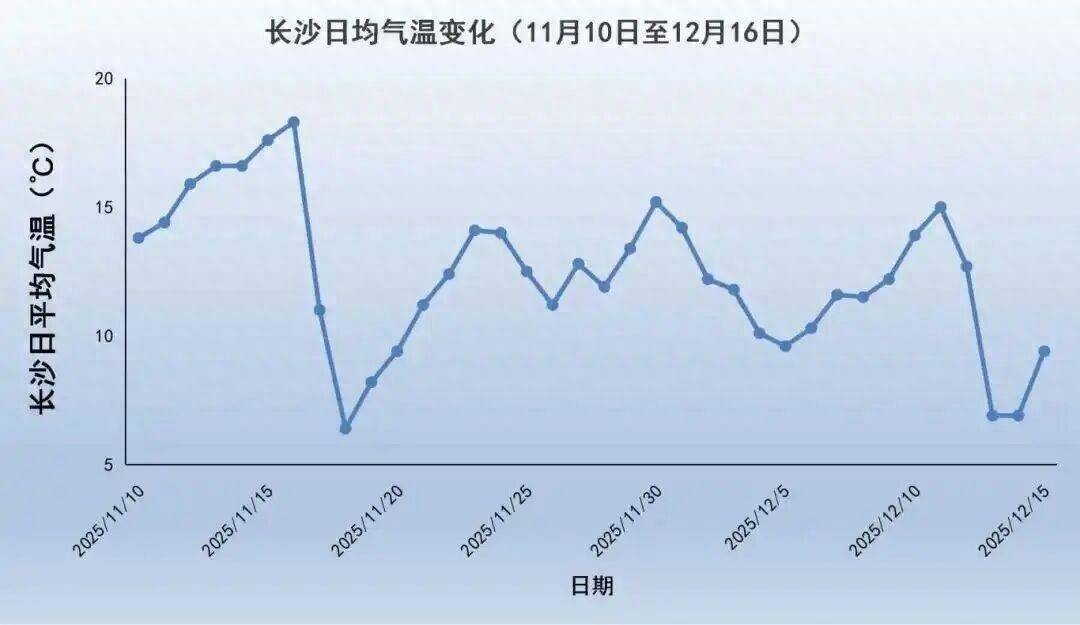 气象学家通常会为四季变换设一个“门槛”。比如,只有当连续5天日平均气温低于10℃,才记作“入冬”。换句话说,只有稳定跨过去,“冬”才算正式“入户”湖南。这也是气象学上经常提到的“滑动平均气温”。